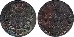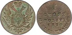 - ↑ 1 grosz (1824). fortresscatalogue.com. [dostęp 2023-10-31]. (pol.).