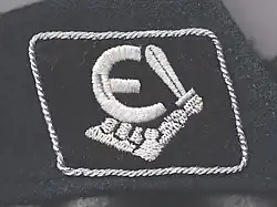 - Patki – Jeszcze w 1943 roku Estończycy opracowali patkę nawiązującą do Estońskiego Krzyża Niepodległości (ramię rycerza trzymającego miecz, a przy niej zaokrąglona litera E). Latem 1944 roku Niemcy wprowadzili własny wzór, którego głównym motywem był miecz oraz litera E, ale bez rycerskiego ramienia. Wersja niemiecka cieszyła się małym uznaniem, tym samym powrócono do poprzedniego wzoru[10].