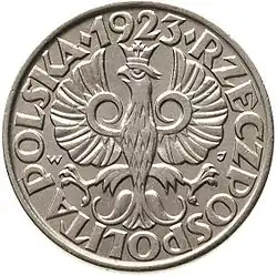 - ↑ Janusz Parchimowicz, Monety Rzeczypospolitej polskiej 1919–1939, wyd. pierwsze, Szczecin: Nefryt, 2010, s. 28, ISBN 978-83-87355-65-4.