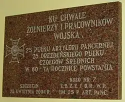 2 lipca 1946 otrzymał nazwę wyróżniającą „Drezdeński”[4] i został odznaczony Orderem Krzyża Grunwaldu III klasy[5]. 19 lutego 1947 przeformowany na 25 Drezdeński pułk artylerii pancernej. Po wojnie stacjonował w Opolu, a od września 1947 w Żarach. W lipcu 1948 przeszedł do Żagania.
