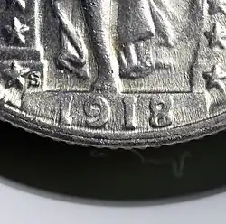 W 1917 roku rozpoczęto emisję ze zmienionym wizerunkiem Miss Liberty. Jej naga pierś została zakryta kolczugą. W 1925 roku obniżono pole z datą emisji, aby uchronić ją przed ścieraniem[24].