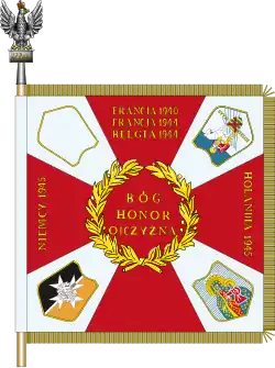 Sztandar ufundowany został przez społeczeństwo belgijskiego miasta Beveren i wręczony 2 marca 1946[c]. Wykonano go w Belgii według projektu kpr. Tadeusza Głębockiego. 17 września 1967 sztandar udekorowany został orderem Virtuti Militari V klasy.