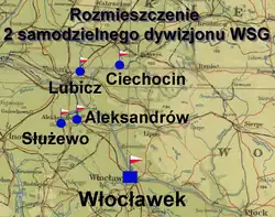 | Rozmieszczenie 2 sdWSG we Włocławku na dzień 25 stycznia 1920 | ||||