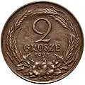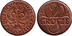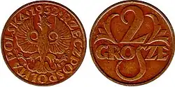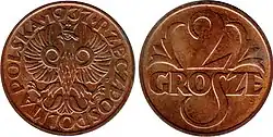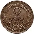 2 grosze wzór 1923 – moneta dwugroszowa, bita w mosiądzu i brązie, wprowadzona do obiegu 1 lipca 1924 r. (Dz.U. z 1924 r. nr 34, poz. 351)[2], wycofana w dniu reformy walutowej 30 października 1950 r[3].