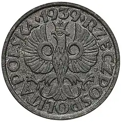 - ↑ Jerzy Chałupski, Specjalizowany katalog monet polskich XX i XXI w. część druga II Rzeczpospolita Generalne Gubernatorstwo 1918-1945, wyd. pierwsze, Sosnowiec 2008, s. 24, ISBN 83-912223-4-9.