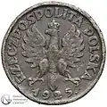 - z innym awersem (rok 1924 wokół orła), bita w Warszawie w: