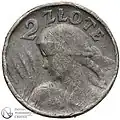Moneta 2 złote 1924 z mennicy z Filadelfii była w XX w. jedyną polską monetą wprowadzoną do powszechnego obiegu, która została wybita stemplem odwróconym[11].