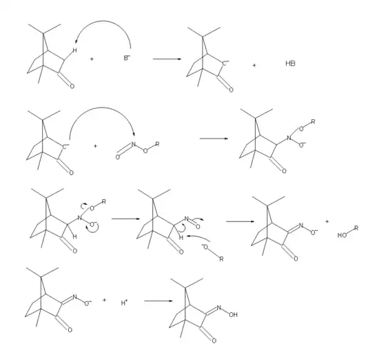 - Mechanizm otrzymywania 3-oksymukamforchinonu z kamfory przy użyciu zasady