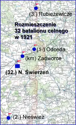 | OdeB 32 batalionu celnego w Nowym Świerżeniu na dzień 1 września 1921[7] | ||||