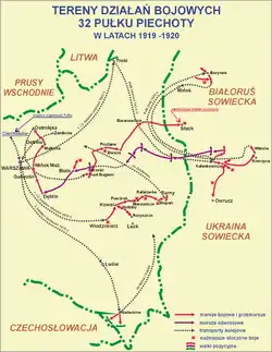 - Stanisław Harasymow: Zarys historji wojennej 32-go pułku piechoty. Warszawa: Wojskowe Biuro Historyczne, 1928, seria: Zarys historii wojennej pułków polskich 1918–1920.