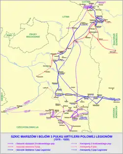 - ↑ 4 bateria nie powróciła do pułku, gdyż podczas ofensywy bolszewickiej została zmuszona do złożenia broni przed Litwinami[9].