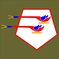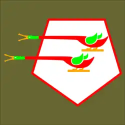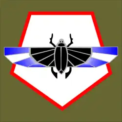 - Regulaminowe tło pod godło eskadr 4 pułku lotniczego obowiązujące od 1932 i godła „zwierzęce” eskadr[16]