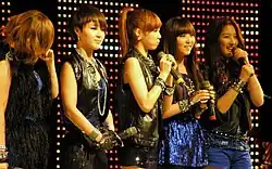 ![]() 4minute w Singapurze w 2012 roku. Od lewej do prawej: Sohyun, Jiyoon, Hyuna, Gayoon, Jihyun | |