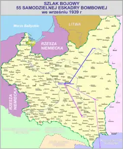 W kampanii wrześniowej 55 samodzielna eskadra bombowa lekka walczyła w składzie Brygady Bombowej[6].