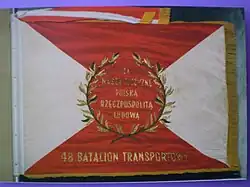 - ↑ Jednostka używała sztandaru swojej poprzedniczki - 48 batalionu transportowego