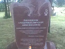 - ↑ Żołnierze 5 Wileńskiej Brygady AK: stoją od lewej: ppor. Henryk Wieliczko „Lufa”, por. Marian Pluciński „Mścisław”, mjr Zygmunt Szendzielarz „Łupaszko”, wachm. Jerzy Lejkowski „Szpagat”, por. Zdzisław Badocha „Żelazny”