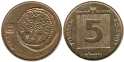 Awers przedstawia kopię monety z czwartego roku wojny żydowskiej, nazwę państwa w językach arabskim, angielskim i hebrajskim oraz herb Izraela. Rewers zawiera nominał monety, napis „Agora” po angielsku i hebrajsku oraz rok zapisany po hebrajsku.[1].