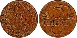 - ↑ Jerzy Chałupski, Specjalizowany katalog monet polskich XX i XXI w. część druga II Rzeczpospolita Generalne Gubernatorstwo 1918-1945, wyd. pierwsze, Sosnowiec 2008, s. 106–109, ISBN 83-912223-4-9.