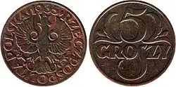 - ↑ Jerzy Chałupski, Specjalizowany katalog monet polskich XX i XXI w. część druga II Rzeczpospolita Generalne Gubernatorstwo 1918-1945, wyd. pierwsze, Sosnowiec 2008, s. 83, ISBN 83-912223-4-9.