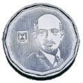| 5 ILS | Lewi Eszkol | 1990 | miedzionikiel | 24 | 8,2 | zwykły | Mennica Państwowa Badenii-Wirtembergii | 1 500 000 | KM# 208 | ![]() |