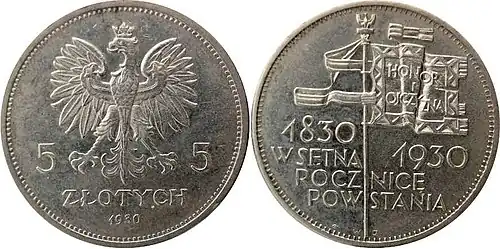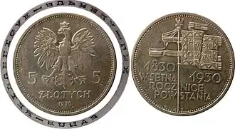Moneta upamiętniała 100-lecie powstania listopadowego[4].
