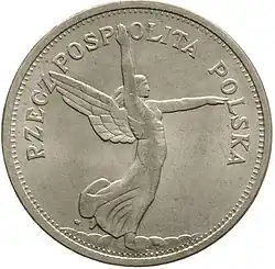 - ↑ 934. Nike 5 złotych 1928 Warszawa – znak dalej | Archiwum Gabinetu Numizmatycznego D. Marciniak [online], archiwum.gndm.pl [dostęp 2018-09-30] [zarchiwizowane z adresu 2018-09-30] (pol.).