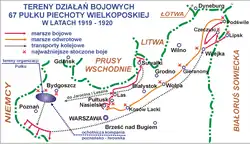 W styczniu 1920 pułk wkroczył do Rawicza i Leszna, obejmując tereny będące dotychczas w posiadaniu Niemców. Po połączeniu Armii Wielkopolskiej z Wojskiem Polskim, 9 pułk strzelców wielkopolskich 9 lutego 1920 przemianowany został na 67 pułk piechoty[4].