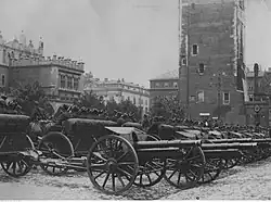 - ↑ Mjr art. Jan Gintel ur. 17 marca 1899 w Krakowie. Był odznaczony Krzyżem Walecznych (czterokrotnie) i Złotym Krzyżem Zasługi[29]. Krzyż Walecznych po raz pierwszy otrzymał w zamian za dyplom byłego Frontu Białorusko-Litewskiego „za Waleczność”[30][31]. Na stopień majora został mianowany ze starszeństwem z 19 marca 1937 i 15. lokatą w korpusie oficerów artylerii[32]. W czasie kampanii wrześniowej dostał się do niemieckiej niewoli. Zmarł 9 maja 1968. Został pochowany na Cmentarzu Rakowickim.