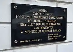 - „Nizkor – o powstaniu '43”, Gmina Wyznaniowa Żydowska, ul. Twarda 6