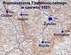 | Ordre de Bataille 7 batalionu celnego w Żywcu na dzień 1 czerwca 1921[11] | ||||