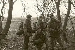 - ↑ Żołnierzom kompanii specjalnej, tak samo jak żołnierzom wojsk powietrznodesantowych przysługiwało prawo noszenia beretu w kolorze bordowym oraz prawo używania tytułu skoczka spadochronowego i noszenia odznaki skoczka spadochronowego wojsk powietrznodesantowych. Zadaniem było rozpoznanie dalekie w pasie do 100 kilometrów od przedniego skraju. W związku z tym od 1968 r. w kompanii tej prowadzono, aż do początku lat 90., regularne szkolenie spadochronowe, które odbywali na lotnisku w Pile i Bydgoszczy, a szkolenie narciarskie w Zieleńcu, w Górach Orlickich. Zimą i latem kompania specjalna odbywała szkolenie poligonowe na Jaworzu, w Wędrzynie, w ośrodku rozpoznawczym i zurbanizowanym „Nowy Mur”.