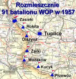 W marcu 1968 batalionowi lądowemu WOP Tuplice podlegały: