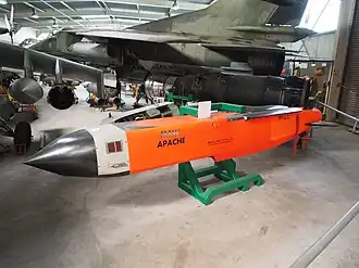 APACHE (Arme Planante À Charges Éjectables) – konwencjonalny pocisk manewrujący dalekiego zasięgu o niskiej wykrywalności, służący do niszczenia ważnych celów powierzchniowych. Pocisk ewoluował od zasobnika szybującego, poprzez pocisk manewrujący aby na jego bazie zaprojektować i wybudować Storm Shadow.