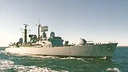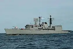 - ↑ HMS „Sheffield” został później zatopiony 4 maja 1982 roku argentyńską rakietą Exocet podczas wojny o Falklandy.