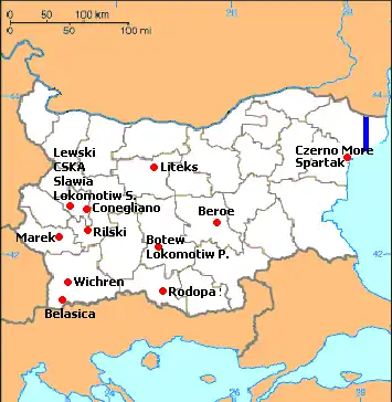 1 Po meczu 1. kolejki Czernomorec Burgas/Sofia – Lewski Sofia BFS przyznał drużynie gości walkower 3:0, a gospodarzy ukarał odjęciem trzech punktów. Powodem kary było zgłoszenie przez działaczy Czernomorca nieuprawnionych piłkarzy.