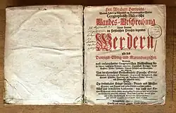 - Geographisch-Historische Landes-Beschreibung deren dreyen im Pohlnischen Preußen liegenden Werdern, als das Dantziger- Elbing- und Marienburgischen. Worinnen nach vorhergehender Geographischen Beschreibung dieser Länder nach ihrem Nahmen, Situation, Eigenschafft, Gräntzen, Dorfschafften, Flüssen, Wäldern Thieren, Früchten und Gewächsen, mit mehrerm von der Einwohner Beschaffenheit, Sprache, Sitten, Gebräuche, Privilegien und Freyheiten, Religion und Gottesdienst, Kirche und Schulen, Regierung und Regiments-Form, Gewerb und Hauswesen gehandelt wird. Mithin die sonderbahre Kriegs-Zufälle, Brand- und Wasserschaden auch Tugend- und Laster-Händel angeführet werden. Königsberg 1723 (książka online)