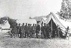 W listopadzie 1861 roku Lincoln przyjął rezygnację generała Winfielda Scotta i zastąpił go George’em McClellanem[21]. W następnym roku prezydent był ostro atakowany przez przeciwników wojny i Południowców, a także przez abolicjonistów[22]. Podkreślał wówczas, że jego głównym celem wcale nie jest walka z niewolnictwem, ale walka o utrzymanie jedności kraju[22][a].