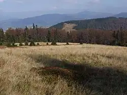 Widok na polanę Podskały oraz Beskid Wyspowy