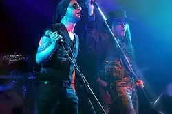 ![]() Adam Darski podczas koncertu z zespołem Me and That Man w ramach festiwalu Rock am Ring w Nürburgring, 2 czerwca 2017 | |