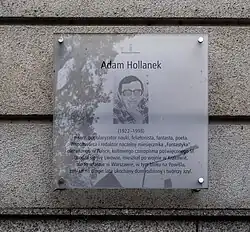 Na bloku przy ul. Górnośląskiej 3 w Warszawie znajduje się tablica upamiętniająca Adama Hollanka[2].