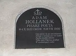 - ↑ Cmentarz Stare Powązki: ADAM HOLLANEK, [w:] Warszawskie Zabytkowe Pomniki Nagrobne [dostęp 2019-11-06].