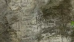 Wiele znaczących postaci historycznych miało okazję podziwiać Skalne Miasto w Adrszpachu i Teplicach. Między innymi królowa pruska Luiza, król polski i elektor saski August II Mocny, hrabia Franz Anton von Sporck z pobliskiego Kuksu, cesarz Józef II, cesarz austriacki Karol I, Johann Wolfgang Goethe i wielu innych. Jedną z pozostałości dawnych wycieczek są napisy pozostawione przez dawnych turystów na skałach. Najstarsza inskrypcja pochodzi z końca XVIII wieku. Na skale Kochankowie widać reszty farby po napisie wykonanym w 1968 roku. Był to protest tutejszych wspinaczy przeciwko inwazji wojsk Sił Zbrojnych Układu Warszawskiego na Czechosłowację.