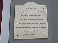 - ↑ Benedykt XVI: Przemówienie Benedykta XVI w bazylice Niepokalanego Poczęcia NMP w Ouidah. ekai.pl, 2011-11-19. [dostęp 2013-02-13]. [zarchiwizowane z tego adresu (2016-03-05)].