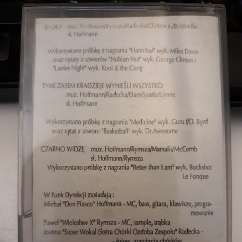 | Funk Dyrekcja | Demo Tape No 1 (demo) | pop, funk, świadomy hip-hop | 1997 | Don Fiasco | wokal, słowa, bas, gitara, klawisze, automat perkusyjny, produkcja | Funkee Kind Records, Unc. (fikcyjna wytwórnia) | [60][12] |