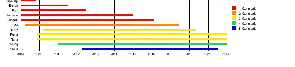 | Soyoung Bekah Kahi Jooyeon Jungah Uee Lizzy Raina Kaeun | |