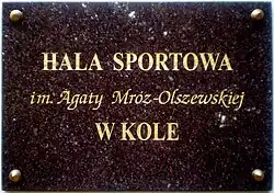 - ↑ Hala sportowo-widowiskowa w Brzostku imienia Agaty Mróz-Olszewskiej już otwarta. Dębica TV, 2014-04-10. [dostęp 2020-01-06].