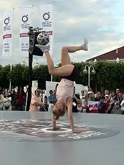 - ↑ Monika Mikołajewicz: Mistrzowskie popisy Freestyle Football. zamosconline.pl, 2015-08-18. [dostęp 2024-11-06]. (pol.).