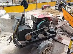 - silnik wysokoprężny (diesel) lub benzynowy z rozruchem ręcznym lub elektrycznym; lub (silnik elektryczny, silnik Stirlinga (silnik cieplny), silnik parowy, silnik pneumatyczny, Silnik P.M.M)