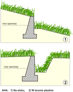 Aha – ukryta granica ogrodu w formie głębokiego rowu lub uskoku terenu[1], przeprowadzana zazwyczaj miękką płynną linią.