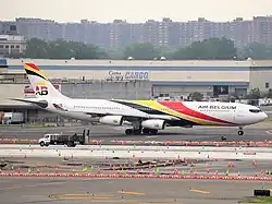 - ↑ Air Belgium suspend pour l’hiver sa liaison vers Hong Kong [online], RTBF Info, 21 września 2018 [dostęp 2019-07-23] (fr.).